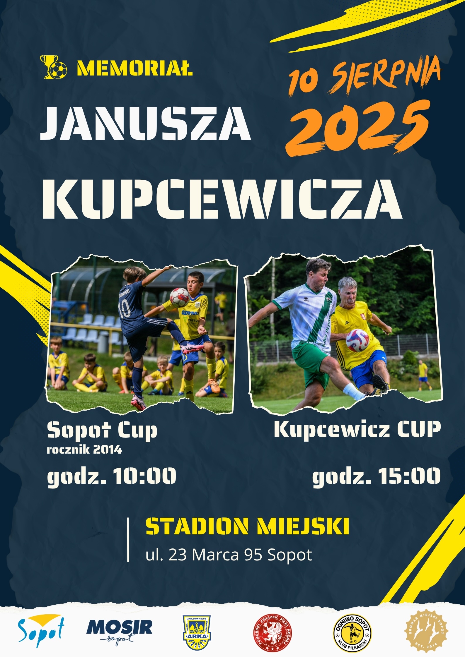 Memoriał Janusza Kupcewicza to wyjątkowe wydarzenie sportowe, które odbędzie się 10 sierpnia 2025 roku w Sopocie. Na stadionie MOSiR Sopot, przy ul. 23 Marca 95, spotkają się piłkarze, kibice oraz wszyscy, którzy chcą uczcić pamięć jednej z najważniejszych postaci w historii polskiego futbolu, Janusza Kupcewicza. Odszedł od nas na zawsze w lipcu 2022 roku. Pamięć o nim trwa! To wydarzenie łączy młodzieżową rywalizację sportową z emocjonującym meczem oldbojów Arki Gdynia i Lechii Gdańsk.